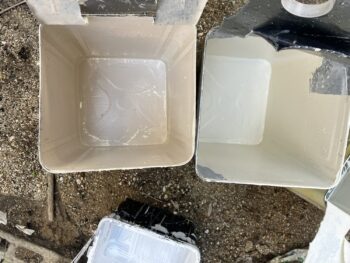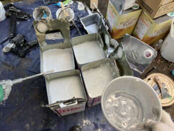 これにて外壁の塗装は完了ということでちらっとシートをめくると壁と天井の色の違いが下からみるとわかりませんでした。