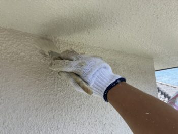 天井と外壁の色が違いますので刷毛でライン取りをします。